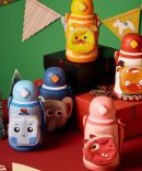 600ML Cute Children Thermos Bottle Straw Stainless Steel Leak-Proof Vacuum Flask Cartoon Bpa Free Kids Water Bottle Kids Gifts